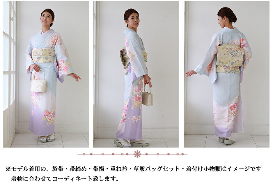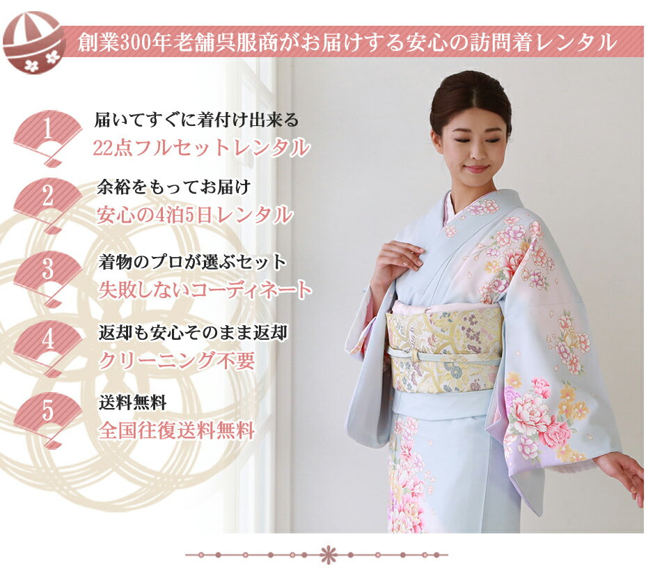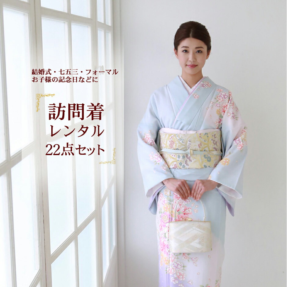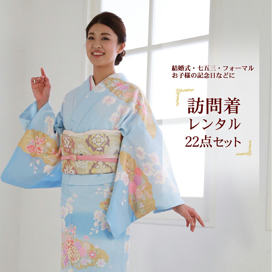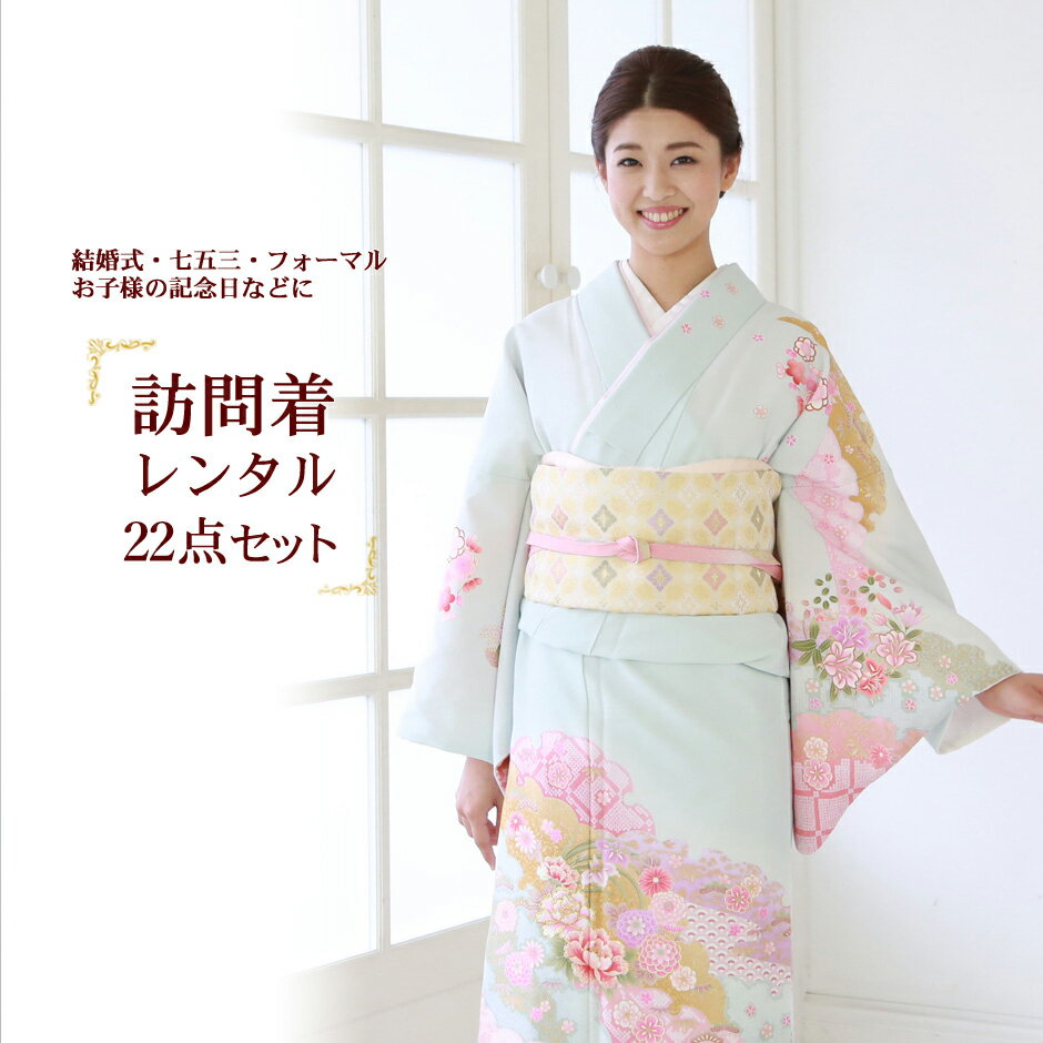 【レンタル】 訪問着 セット レンタル 入学卒業 houmongi モダン 入学式 草履 バッグ 大きいサイズ レンタル着物 上品 華やか 訪問着レンタル フルセット 着物 きもの 母親 卒業式 入園式 卒園式 結婚式 お宮参り パーティー 貸衣装 袋帯 フリーサイズ 155cm〜170cm 水色