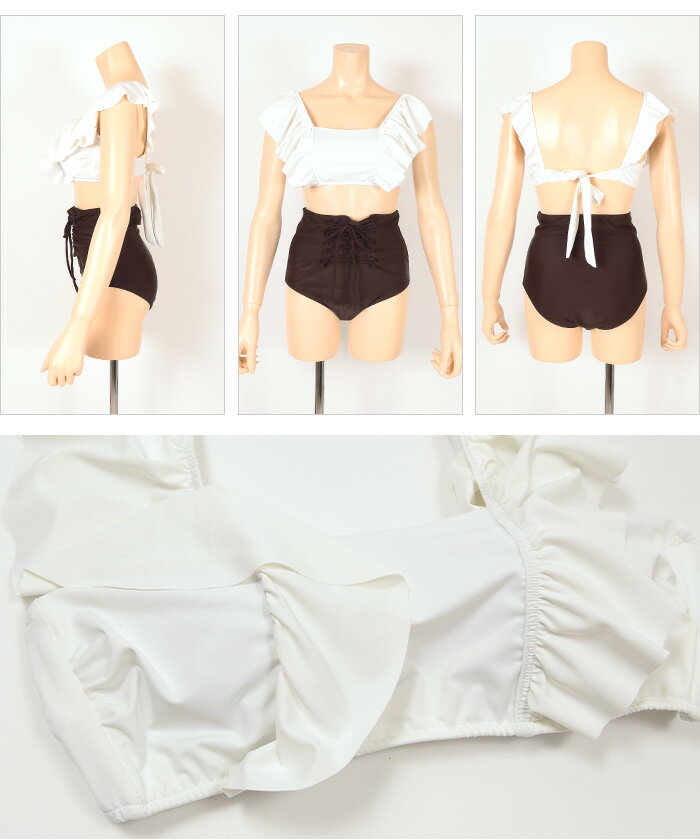 ショルダーフリル×ハイウエストビキニ/水着/ビーチ/プール/海/リゾート【SEADRESS シードレス】